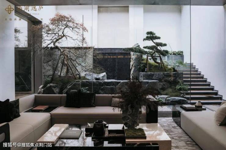在丰沛的功能区之上,西湖逸庐还特意增加了一处下沉式庭院。绿植、叠石和流水巧妙组合,一座精巧的山水园林就此诞生。