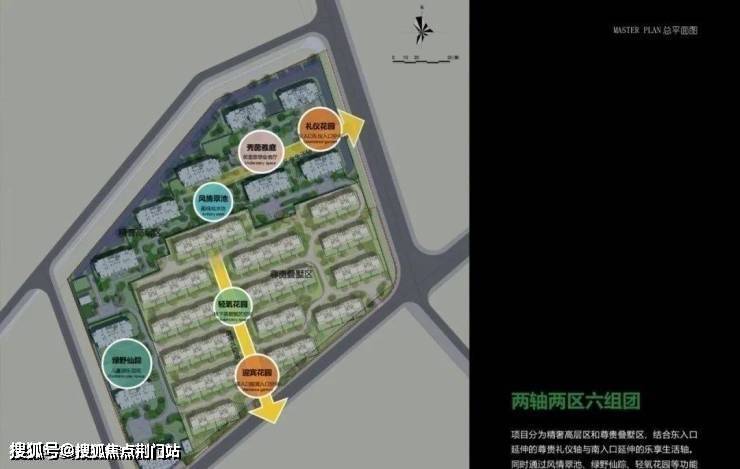 由南侧主入口进入园区,绕过 迎宾水景,便是极具仪式感的 景观大中轴。最富意趣的是 中央水景,将戏水池和叠水景观相结合,水幕潺潺,棕榈环绕,一派超然隐逸的度假氛围。