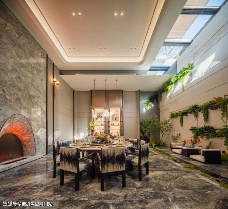 穿过门庭,眼前是占地千方、精心布局的「诗意江南园林」,撷取郭庄园林的精髓,以现代建筑语言演绎: