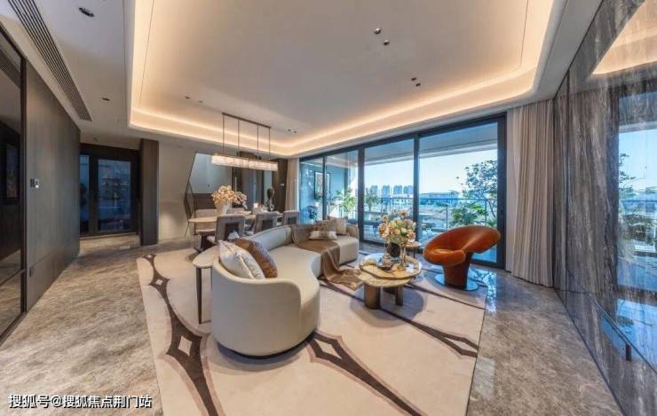 从餐客厅的大理石地面、岩板背景墙,到厨房的老板四件套(含三眼灶);从主卧的硬包背景墙、鱼骨拼地板,再到主卧卫生间的镜柜嵌美妆冰箱、石材底座浴缸,实用与质感直接拉满。