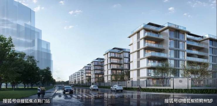 叠墅的顶冠采用披檐形态,铝板立面+香槟金的线条勾勒,呈现「现代极简」的视觉感受。