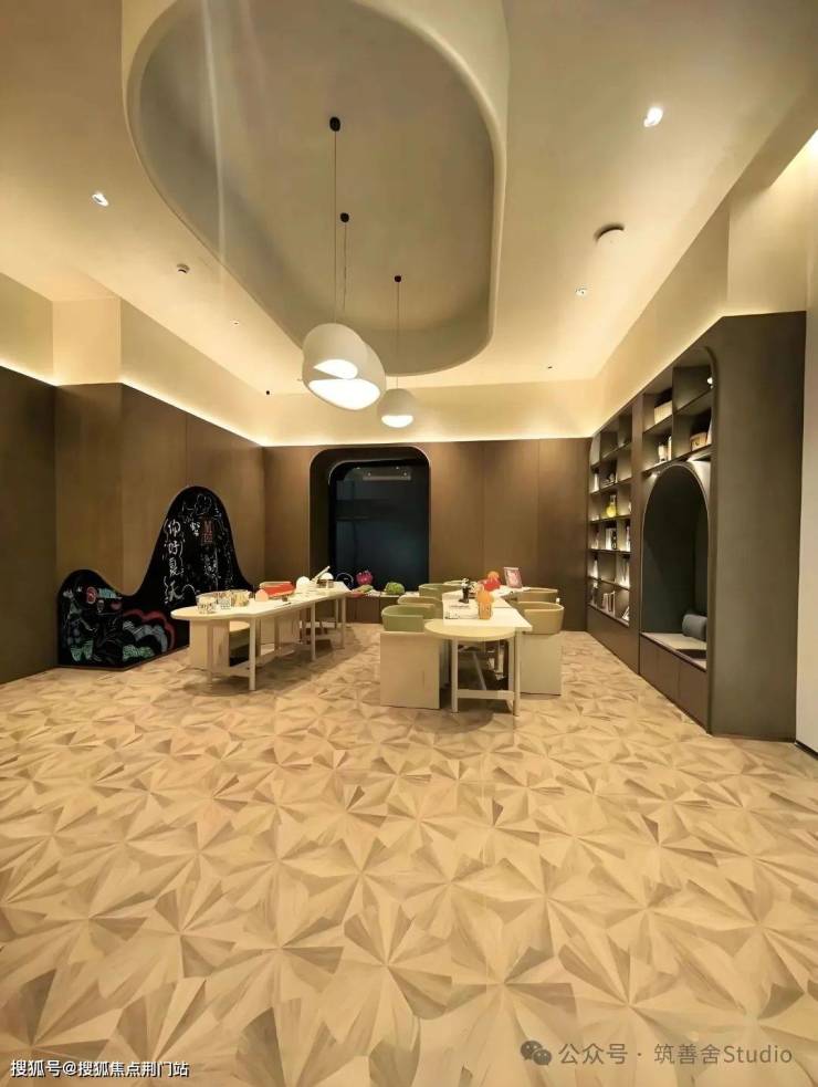 步入雅致的美学生活馆,周遭尽是白洞石的精致铺陈,地面则以鸢尾花图案巧妙铺就,不仅展现出柔和而高雅的色调,更在每个细节中融入鸢尾花的优雅轮廓,将“光明与希望”的意境渲染得淋漓尽致。