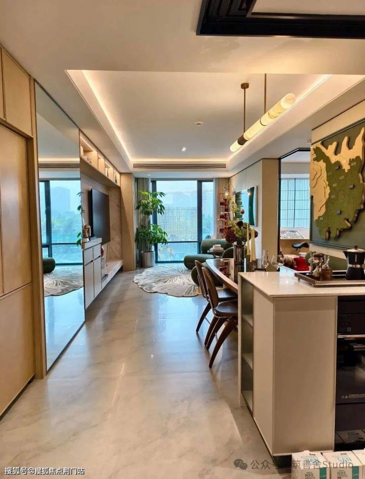 项目建筑宥九米建筑设计院设计,其立面设计沿袭锦庐系经典公建风貌,精选四面铝板与广阔玻璃相结合,打造出封装阳台的精致与通透明快感。底层选用浅色调天然石材,巧妙融入圆弧设计元素,彰显出空间的优雅与品味。这种极致细腻的金丝画框设计,四边以高品质金属铝板环绕,搭配全景玻璃幕墙,既彰显通透之美,又体现现代风格,香槟金与深灰的优雅搭配,令整体外观更显高贵气质,颜值是很不错的。
