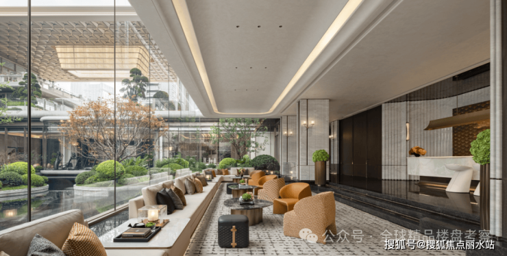 从主入口进入,约85米超宽尺度,约9.5米高鎏金大门,贵气十足。步入其中后,整个社区的景观如同立体山水画,徐徐展开。