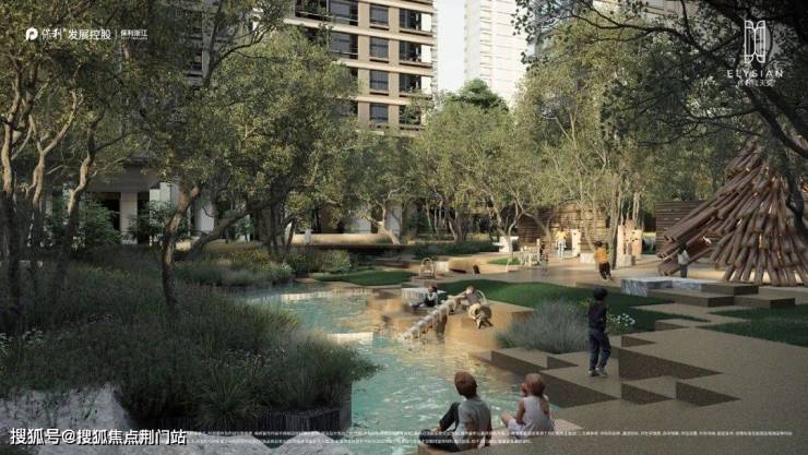 举个例子,单是与水有关的,就包括了约1200㎡围合水院、室内恒温泳池、悬挑无边际泳池,一条约190米长的儿童戏水溪涧,沿溪布满了无动力玩水设施。