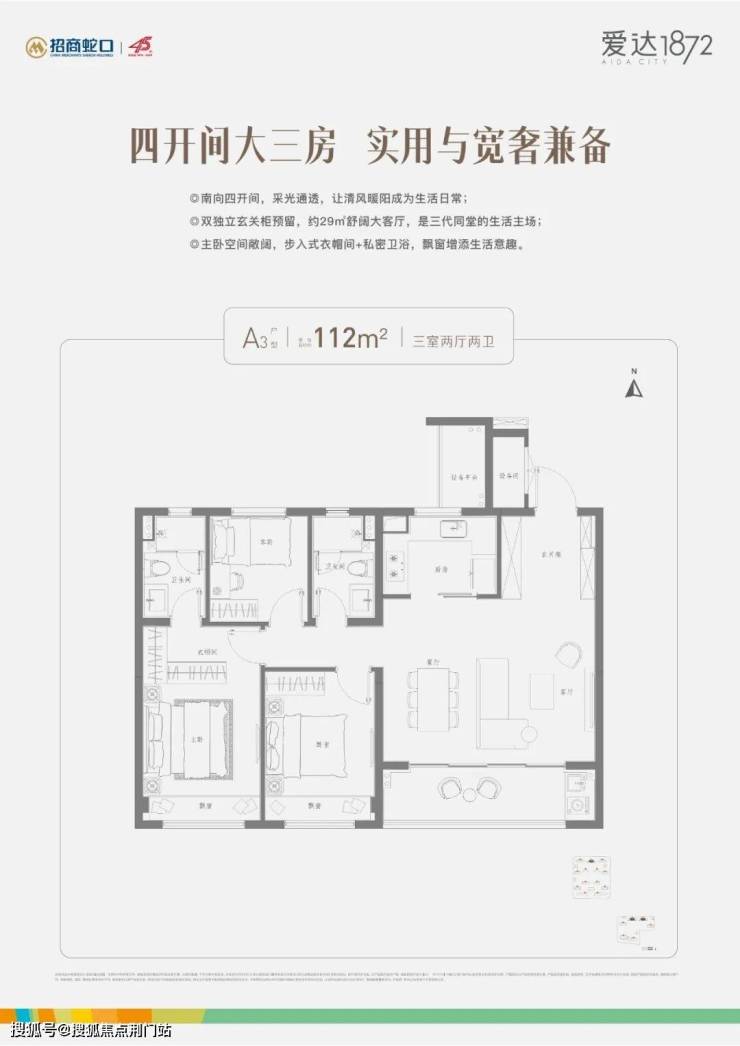 A3 三房两厅两卫 约 112 ㎡