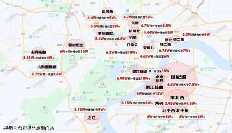 杭州部分新房项目预计价格示意图,供参考