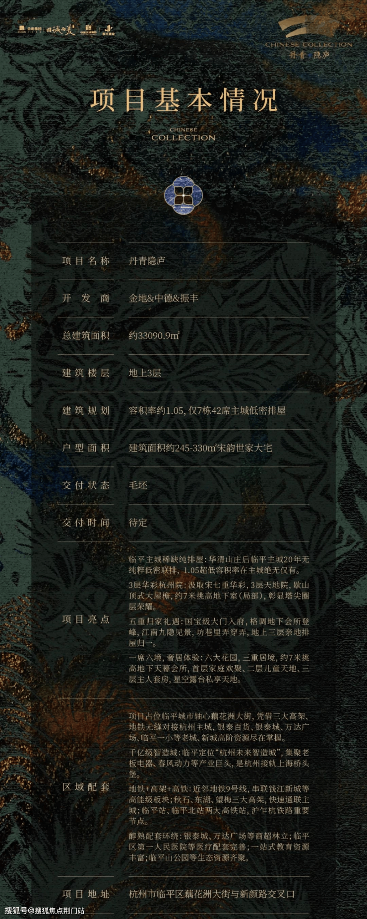 1、本项目推广名为丹青隐庐,备案名为玖隐丹青府。本项目开发商:杭州金振德运房地产开发有限公司。