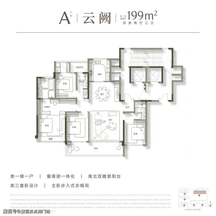 即将首开的建面约199㎡A户型,做到了类一梯一户设计,可实现“电梯厅玄关化”,私密感满分。