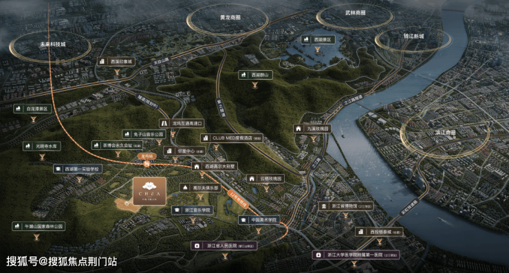钱江新城的商务脉动与万象繁华、未来科技城的创新活力、滨江的高新技术氛围,均在不到6首歌的车程范围内,让居住于此的高净值人士,既能享受隐逸自然的桃源生活,又能紧握时代脉搏,与杭州的澎湃发展同频共振。