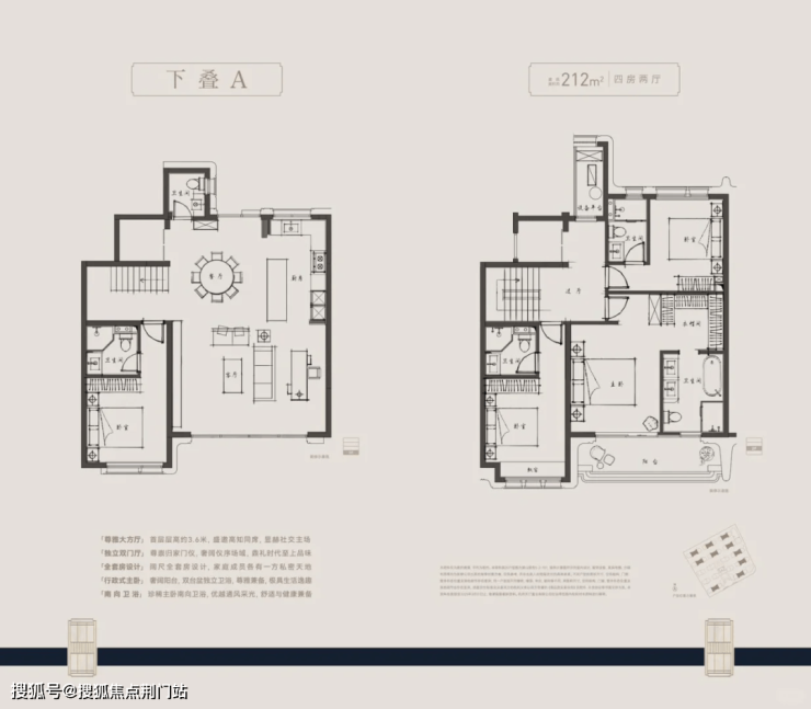 本项目主打户型面积约为210至280平方米,精心设计下叠与上叠首层,均配备南北独立入户门,地下室亦设有南北双向入户门厅及独立车位。上下叠巧妙规划,实现“无交集归家动线”,营造出仿佛无邻居打扰的私密空间。此外,上下叠均设有独立的层高6米的地下室,室内空间采用全套房设计,首层挑高约3.6米。无论是下叠还是上叠,均代表着当前市场产品力的巅峰之作。