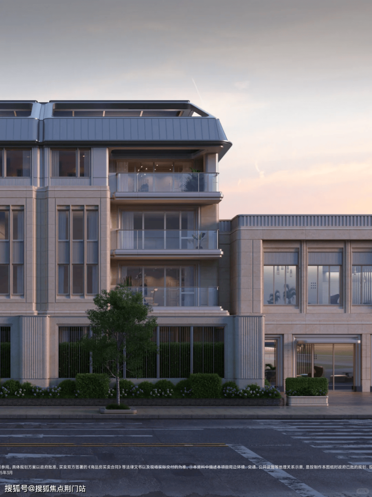 整体而言,建筑立面采用精选葡萄牙米黄石材与铝板搭配,辅以宽阔的玻璃幕墙,营造出恢弘大气的视觉效果。底层以沉稳的石材奠定基调,二三层巧妙运用法式经典格子窗设计,彰显优雅韵味。顶层巧妙融合法式孟莎式屋顶元素,打造出独具匠心的三段式顶部造型,独具风格,易于辨识。