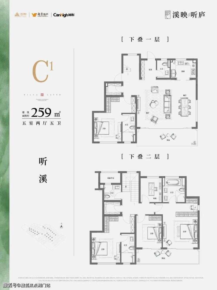 溪映听庐规划建面约200-260㎡的纯正精装改善上下叠,上叠带摘星与观山大露台,下叠带地下室坐享园林小景,同时,大面玻璃的立面设计,最大化的景观视野,万亩茶园化为窗外的胜景。置身室内,望群山绵延、茶田纵横,大地的屋脊与山川的脉络就是造物主最好的天际线,而溪映听庐的业主,就是大山的主人。