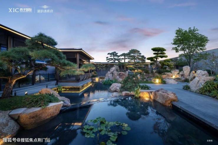 园林景观打造上,宋淑华大师亲自操刀,师法郭庄礼序,以《千里江山图》为蓝本,为湖韵清晖府独创“一轴两苑八境九巷”的立体山水诗境。