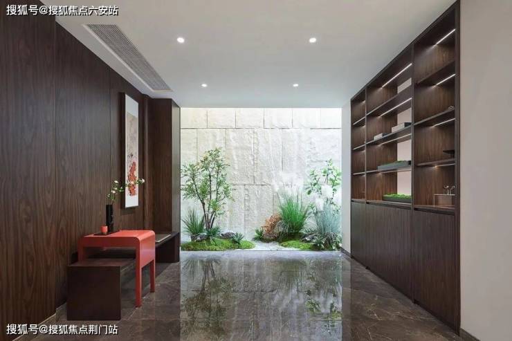 溪映听庐的园林设计以宋式园林为灵感,融合“四水归堂”等传统建筑元素,打造富有文化内涵的景观空间。从主大门进入园区,首先映入眼帘的是横跨一二楼的归家大堂和地下会所,随后经过中空庭院,到达中央水景,形成层次丰富的景观序列。