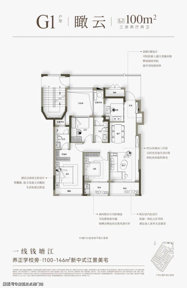 但云启钱湾的江景高层,面积是极为克制的建面约100-146㎡。