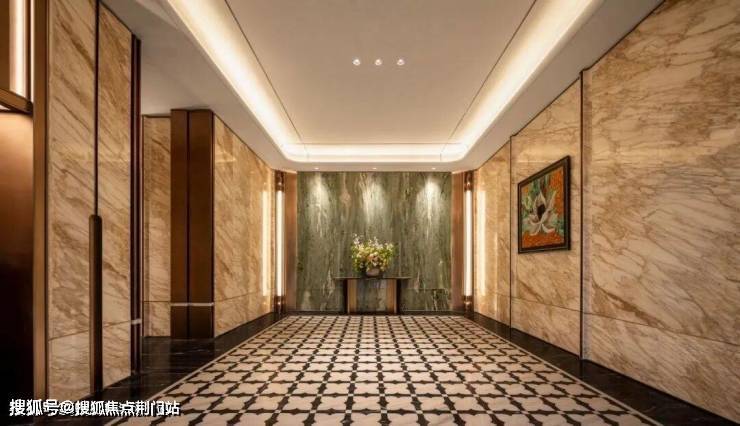 欢迎拨打售楼处电话: 400 - 018 - 7969 转 222 (有专业顾问为您一对一讲解)约78.8x9.2米的恢宏大门,铺装大面积的梵高白奢石和古驰黑石材;四根梵高白立柱托起古铜色铝板;层层抬升,宛若步步登临殿堂。