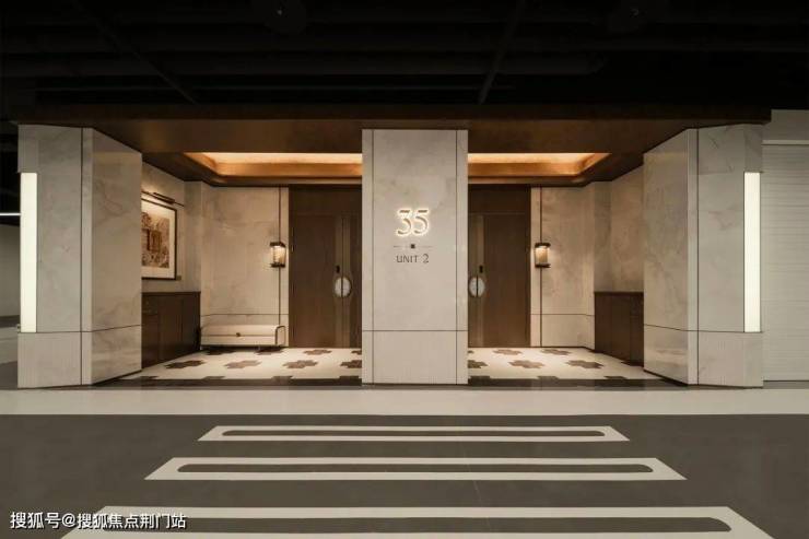 更精妙之处,在于对生活细节的极致打磨。叠墅不仅配置光厅与独立电梯入户,更将门牌以定制壁龛呈现,通过艺术化造型,彰显居者的独特品味与个性主张;立面则巧妙融入独立信报箱与快递存储柜,在保障私密性的同时,实现功能与美学的完美融合。