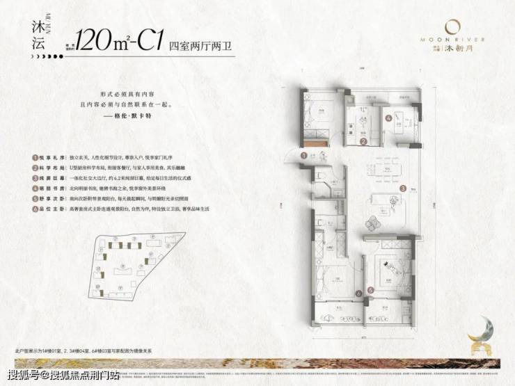 沐新月用外立面和园区告诉你“住在市中心可以很美”,用105㎡边套户型证明“小房子也有豪宅的范”。