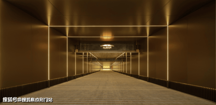 这也是颐萃别院最震撼我的地方。 约7米宽的双向入口,灯带夹道相迎,星空顶光芒照耀,车库地面漫铺大理石、水磨石,天花板也是铝板干挂。