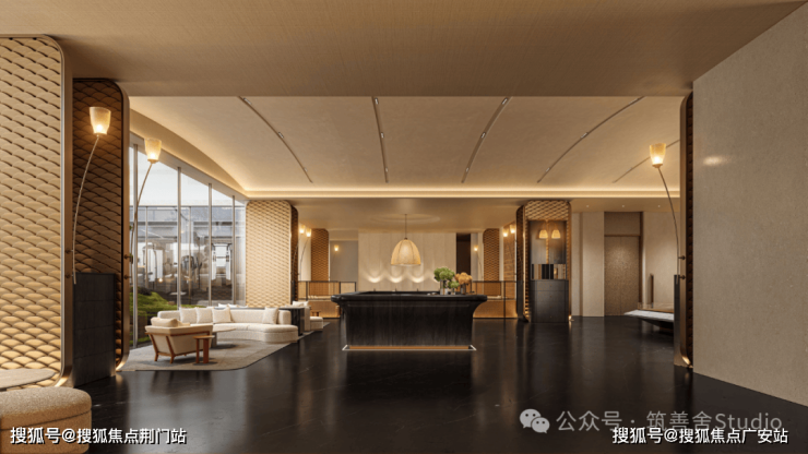 外立面采用窄边框设计,呈现全面屏效果,以极细银白色、深灰色铝线条勾勒出艺术画框的精致轮廓。每一层更以香槟金铝板线条打造独特小画框,镶嵌大面积晶钻玻璃,尽显超级平面美学。