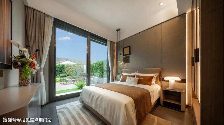 一楼独立套房,方便家里长辈起居;二楼三卧室全朝南,开间都超过10米,全景落地玻璃,风景如画。