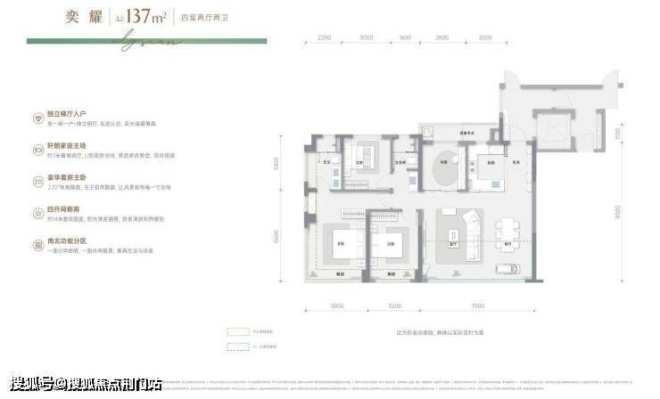 • 类方厅阔境:客厅餐厅厨房一体化设计,营造开阔通透的空间感,提升居住舒适度