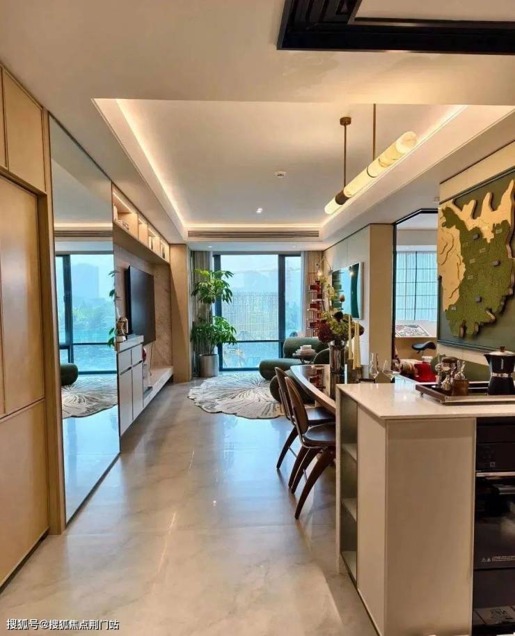 底层选用浅色调天然石材,巧妙融入圆弧设计元素,彰显出空间的优雅与品味。这种极致细腻的金丝画框设计,四边以高品质金属铝板环绕,搭配全景玻璃幕墙,既彰显通透之美,又体现现代风格。