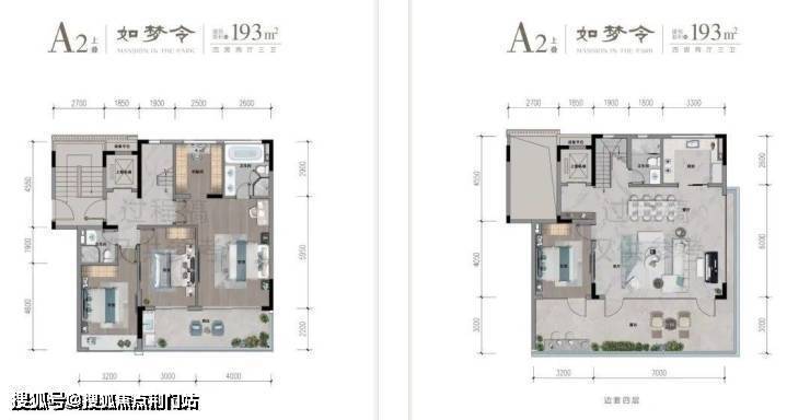 拿上叠来说,餐客厅面宽约7米,进深约6米, 足足约42㎡的大方厅,已经是堪比商业大平层的尺度,外面还衔接着进深约3米,面积约30㎡的超大露台