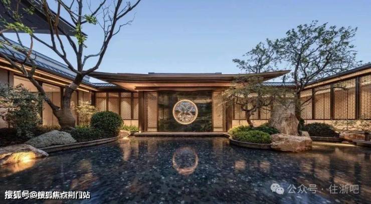 约1300方的下沉式主会所,巧妙地利用了下沉庭院与百年古树的景观,将恒温泳池、私宴厅等高端设施置于如画的景致之中。