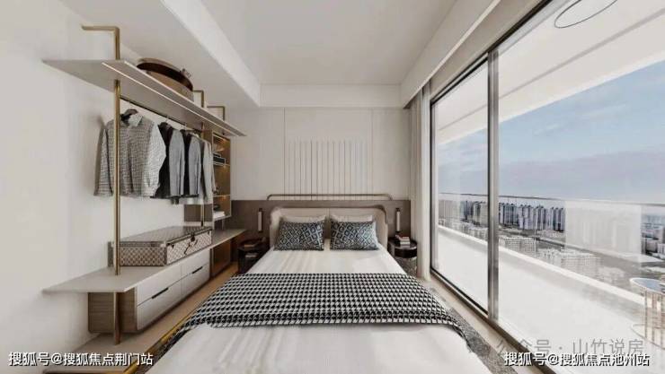 荷语江山府约 143㎡限量版改善四房,配置套房式奢享主卧,在这自成一体的空间之内, 女主人拥有梦寐以求的时尚衣帽间,心爱的包包和服饰有了宽敞的容身之处;独立卫浴设计,劳累一天后,男女主人可以在这里尽情放松,洗下一身疲倦,享受完全属于自己的悦心时刻。 大尺度飘窗,则兑现瞰景和阳光自由,晒和煦暖阳,翻几本闲书 ,仿佛时间都变得缓慢下来。