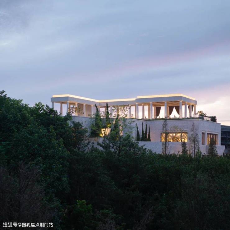 三楼景观瞭望台设置悬挑9米的无边镜面水池,被法式浪漫的柱廊环抱;向南望去,群山连绵,天际线高低起伏,美不胜收。每到傍晚,太阳回到这里,带来满池的霞光,让人忘却烦恼,沉醉于这份恒久的美丽之中。