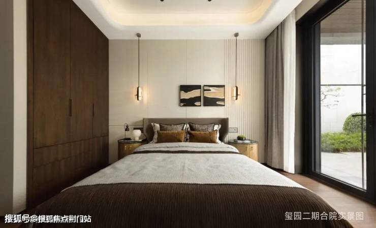 在建筑营造上,由GAD张微老师执笔,延续和家园“章法天成,自然而然”理念,玺园二期合院取法宋代郭熙的“三远论”,结合正脊、戗脊、博风板、悬鱼、鱼鳞瓦等经典中式元素,并巧妙运用石材、玻璃、铝板等材质,诠释中式建筑的虚实相生,平远雅致,带来丰富的视觉体验。