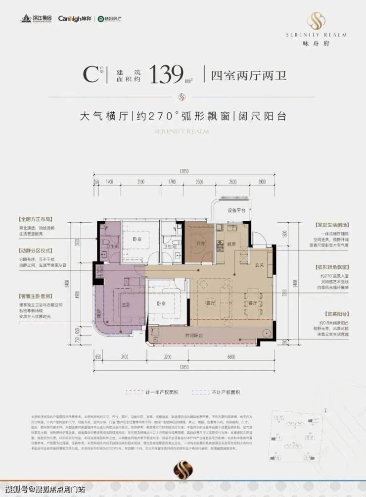首先,户型上就有诸多突破。如建筑面积约139㎡户型采用约6.8米全景横厅,采光极佳;约21㎡主卧带步入式衣帽间,搭配270°转角飘窗,更奢华明亮;双洄游动线体系既保证隐私又创造多元互动场景。这些创新设计在周边楼盘中可能并不常见。