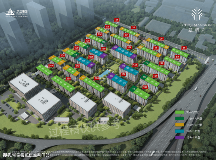 开发商滨江集团,滨奥枢纽芯·杭州南站新城,占地面积约81976㎡,建筑面积约189558.24㎡,容 积 率1.5,绿 地 率20%,建面约97-139㎡23幢7F+1幢6F纯洋房,总价240万起首开送车位!层高为3米,滨江物业,5号线姑娘桥站地铁口直线约250米!