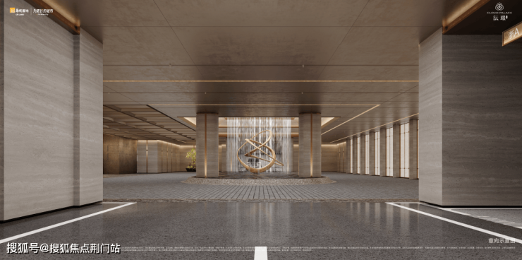 外立面是银河白麻石材搭配香槟色铝板,石材采用折扇的工艺,让立面造型更加立体,顶豪即视感。