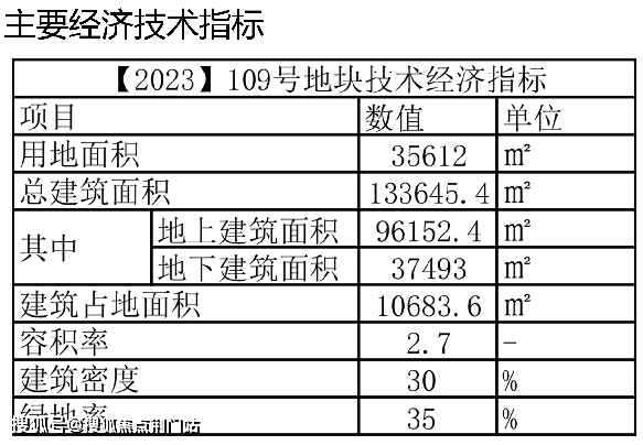地块基本信息:占地35612方,建筑面积达96152方,容积率2.7,用地性质为商住。
