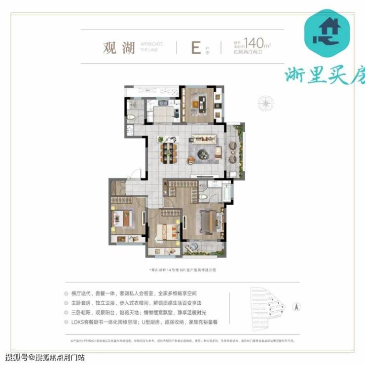 LDKS客餐厨书一体化阔绰空间;U型厨房,超强收纳,家族充裕备餐