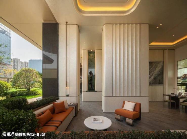 其创新性在入口处展现得淋漓尽致:常规沿街楼栋通常直接由物业用房过渡至住宅二层,但该项目在物业用房上方特别增设了架空层,形成"物业用房-架空层-住宅二层"的独特空间序列。这一设计突破性地通过地面整体抬升,不仅解放了沿街楼栋原本受限的架空层空间,更创造出尺度恢弘的入户大堂,使归家动线在垂直维度上获得仪式感的升华。