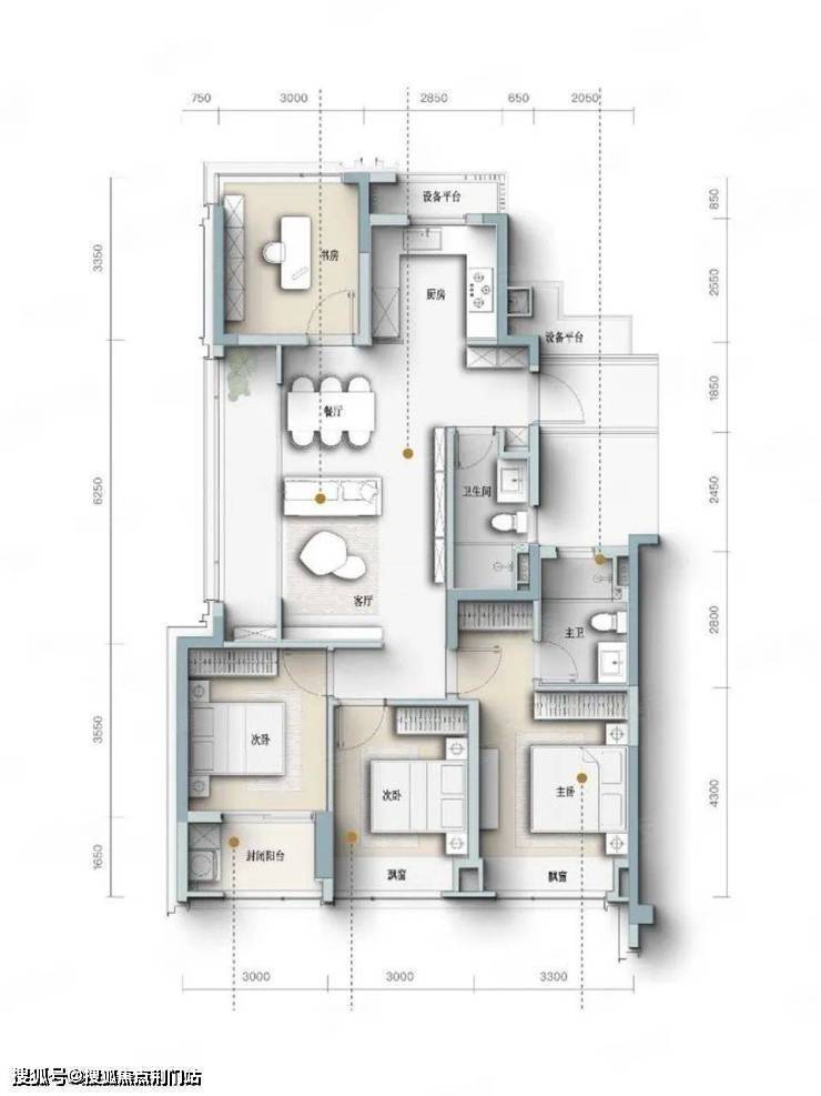 6.25米横厅+三房朝南,主卧独立衣帽间。
