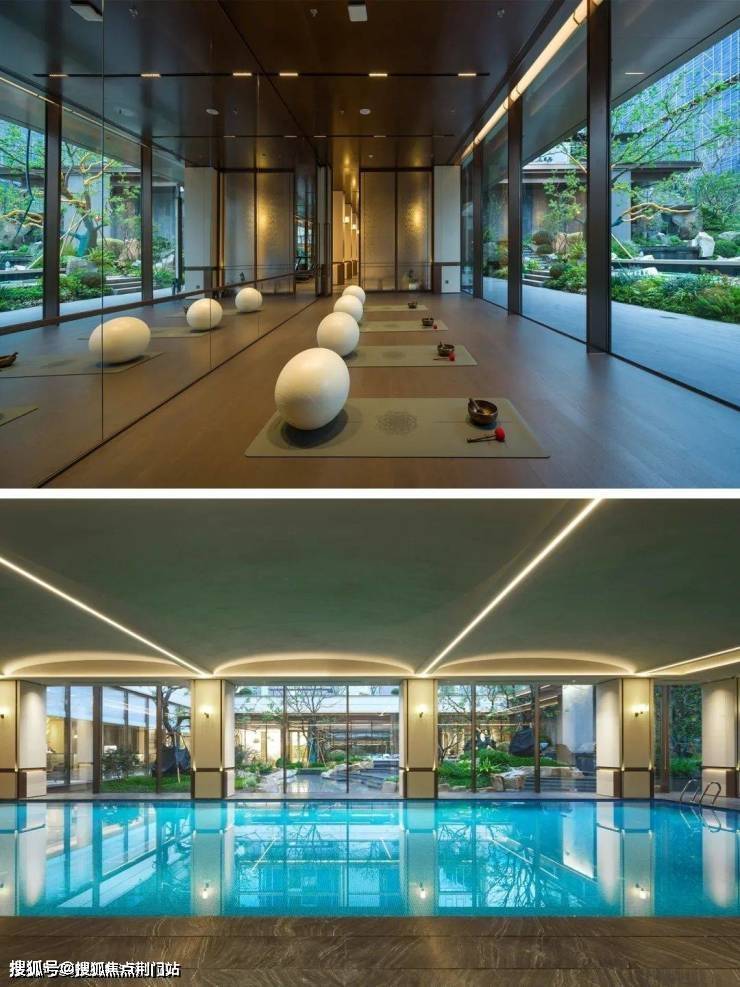 除了得房率出众,项目也有不少地方可圈可点。打造了宽约43.8米大门,四面铝板+大面积玻璃的公建化立面,高窗墙比,看起来很养眼。公区还设计了下沉式庭院、恒温泳池,高层全区覆盖了风雨连廊。