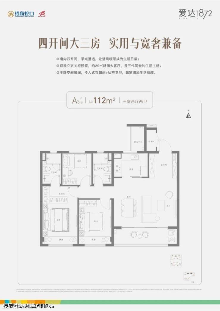 招商爱达1872售楼处电话:400-018-7969转444A2三房两厅两卫 约108㎡