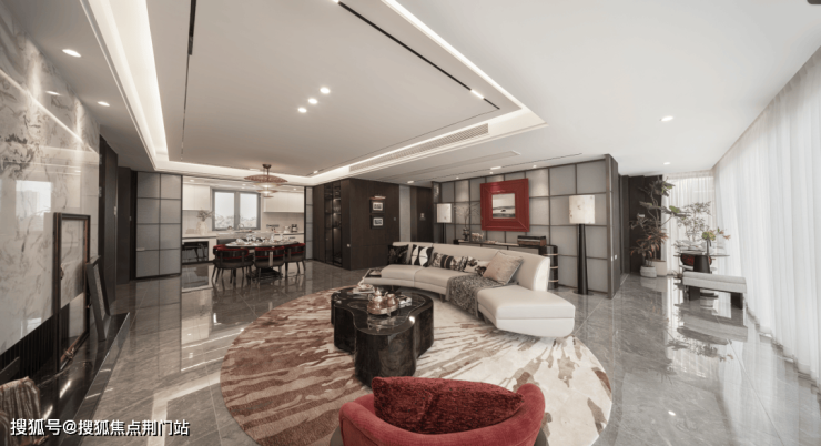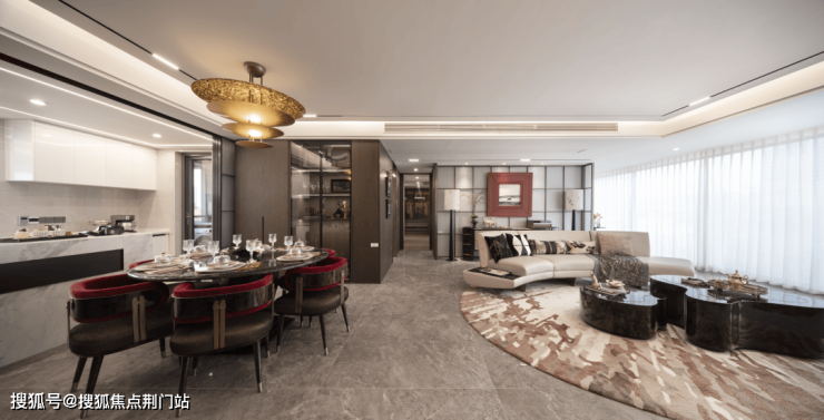超 70㎡家族社交聚场: 餐客厅、阳台等空间无界聚合,形成超级社交生活主场,不仅成为家庭宴会、亲子互动的核心主场,更 为塔尖社交定下气势恢宏的开场基调,大尺度的空间可摆放 12人超级圆桌,宴请层峯名仕 ,往来会晤风范自显。