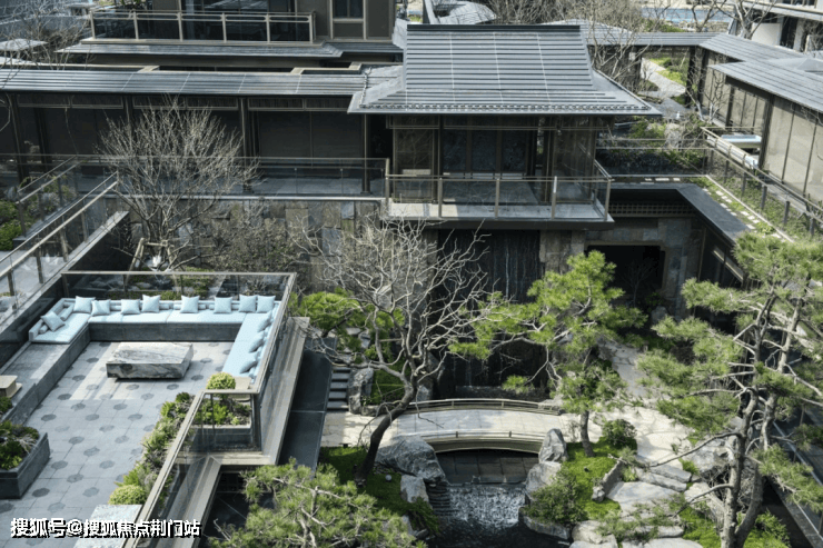 再融合传统合院的歇山重檐、寓意福瑞的纳福悬鱼、古朴典雅的黛墨青瓦,以及错落有致的瘦金披檐、翠意盎然的怀翠亭、依山傍水的倚山阁等经典元素,现代建筑中注入古典东方文化的精髓,营造出一幅古今交融的和谐画卷。