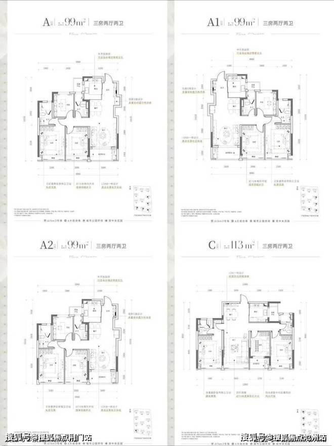 建面约99㎡的三房两卫户型,动静分区,采用三开间朝南设计,可以放下双开门冰箱哦~配备双飘窗和大阳台,保证了室内通风明亮,同时两个卫生间的设置,解决了早上排队使用的问题。