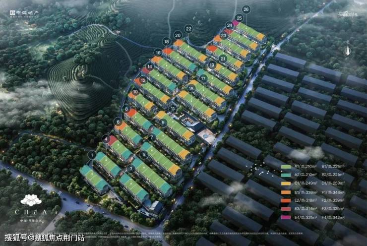 中海月陇云岚共规划了24幢4F叠墅,地块依托山体呈现出坡地形制。建筑风格是黑屋顶的中式叠墅,入口大门内部有集中的树阵园林景观。项目共规划24幢,256户,建筑面积约210-352㎡茶陇山院,精装限价45500元/㎡,装修标准4500元/㎡。