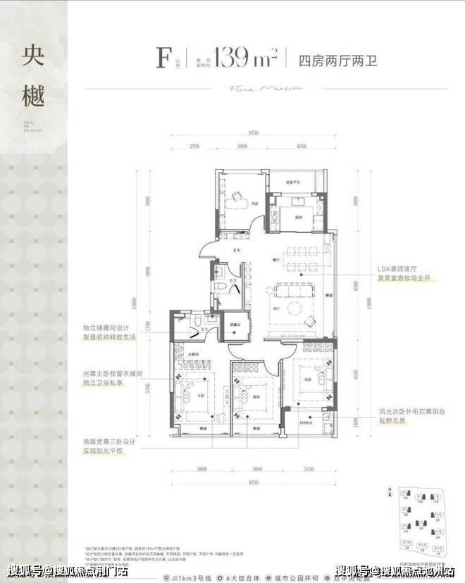 建面约139㎡的四房两厅两卫户型,则以它的南向三卧室:双飘窗+封闭阳台设计脱颖而出。整体南北通透设计,加上主卧衣帽间的贴心设置,为家庭生活提供了更多的空间选择和功能性需求。