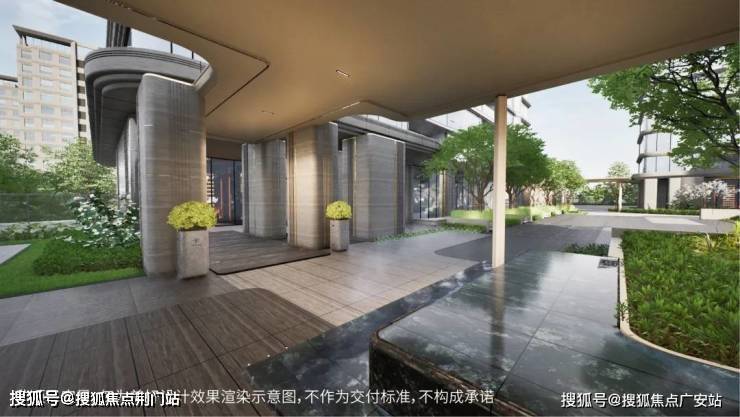 主题架空层与景观一体化设计,在功能、空间、形态上形成互动与互补,内部空间与外部景观良好融合;全域风雨连廊,功能上实现无风雨归家及游园,视线上随着脚步,沿途移步异景,当你归家时犹如穿越绿洲的旅行。(报建为景观廊架,后期存在改造的可能,以实际交付为准)
