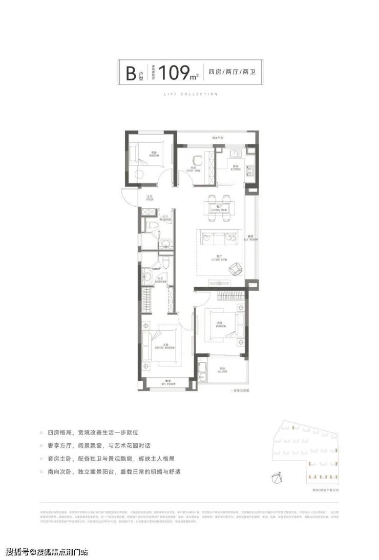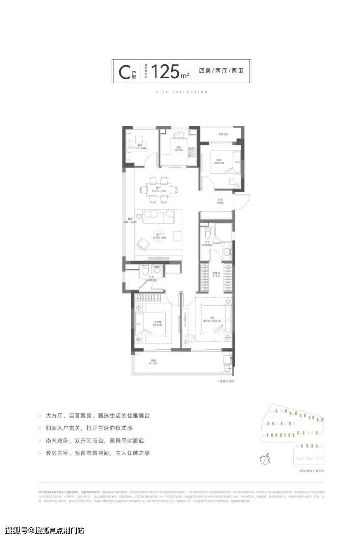 约125㎡边套四房,拥有宽舒的 一体化餐客厅公区,带约6.3米长飘窗。