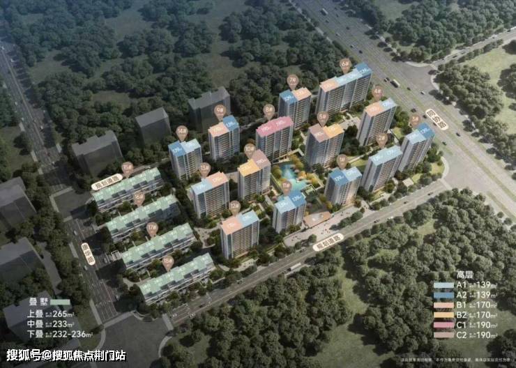项目规划了14幢13~15F高层和4幢6F叠墅,主力户型建面高层约139~190㎡,叠墅约232~265㎡。